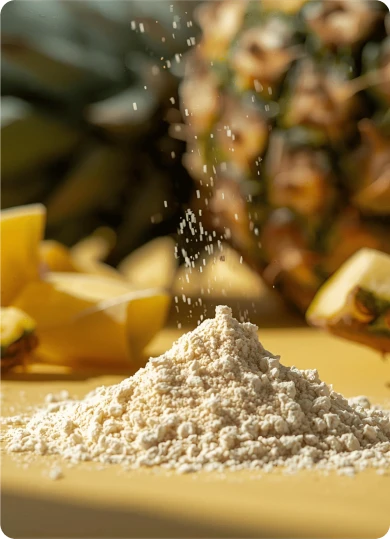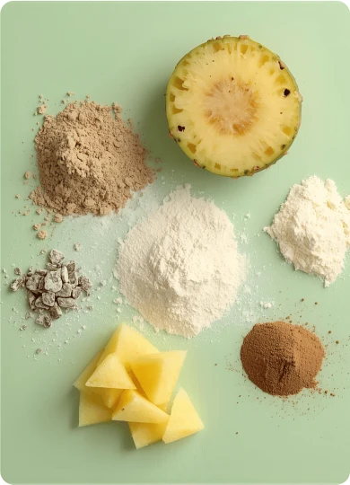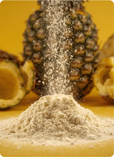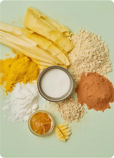 Our portfolio offers natural, sustainable ingredients such as fruit flours, extracts, and enzymes, designed to deliver both functional and nutritional value. With versatile applications across dairy, bakery, plant-based, and meat products, these solutions are available at different development stages, from pilot to market-ready.